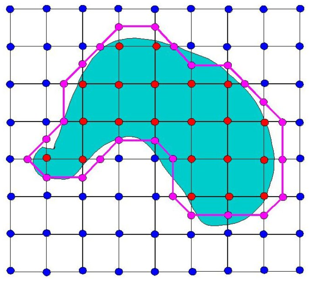 我们对于顶点进行着色,在图形内的就是红色🔴,在图形外的就是🔵